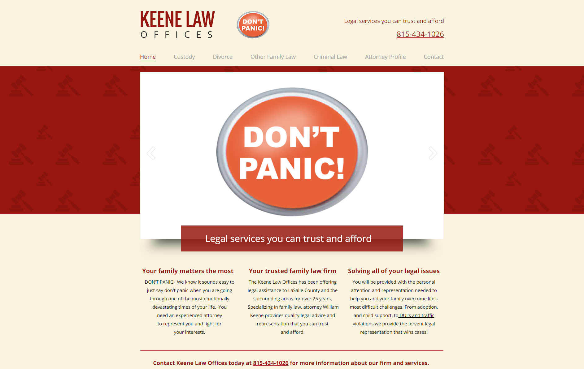 Today, I’m working at The Hauser Design Group on a complete website redesign focused on mobile users for Bill Keene: The Best Family Lawyer in Ottawa, Illinois. Website redesign projects are fun, but they are also extremely important. When done properly, they allow you to make a website look better, while at the same time improving the user experience.